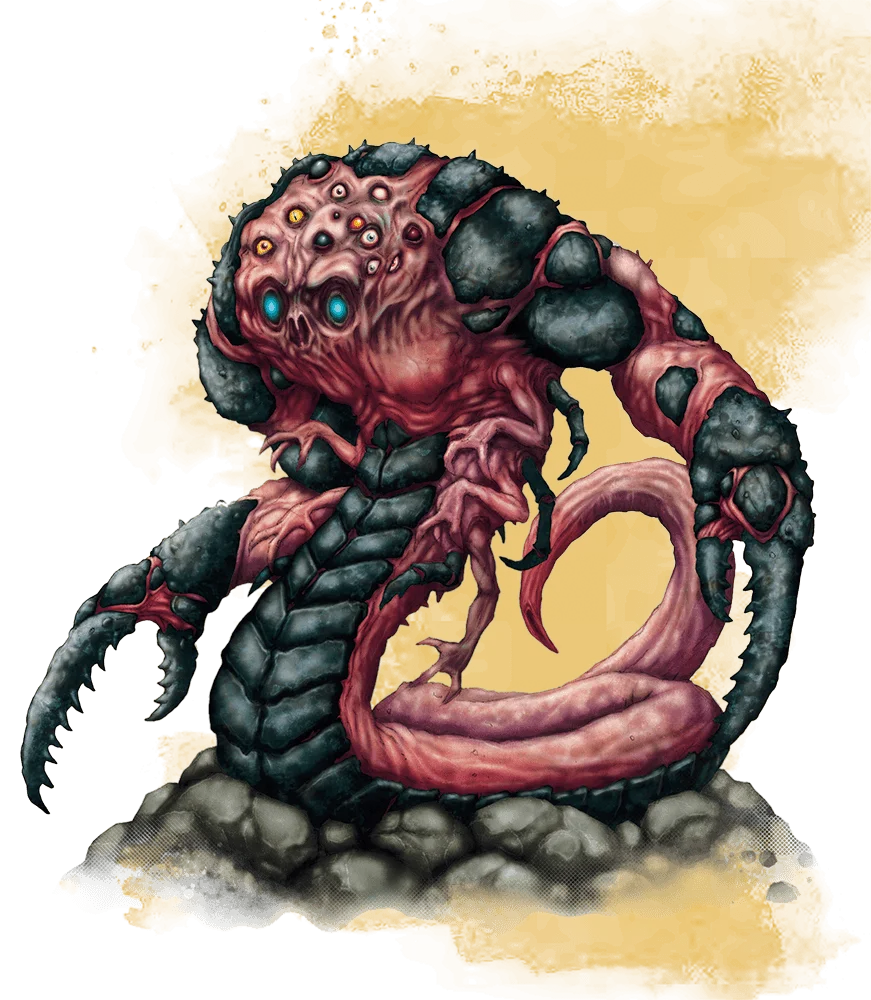 Special Abilities | Frightening Sting (Magical, Mental)The awful stinger of the Tsucora Quori activates the fear receptors in the victim's mind. The target must succeed on a DC 22 basic Will save. Critical Success The target is unaffected. Success The target is Frightened 1. Failure The target is Frightened 2. Critical Failure The target is Frightened 2 and Fleeing for as long as it's Frightened. Pincer Swarm ![]() ![]() |