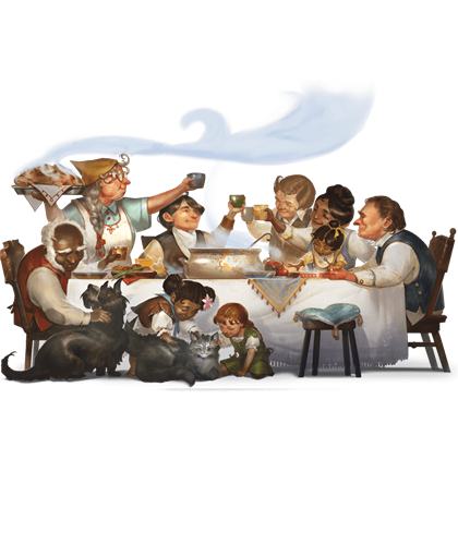 Cherished and guided by gods who value life, home, and hearth, halflings gravitate toward bucolic havens where family and community help shape their lives. That said, many halflings possess a brave and adventurous spirit that leads them on journeys of discovery, affording them the chance to explore a bigger world and make new friends along the way. Their size—similar to that of a human child—helps them pass through crowds unnoticed and slip through tight spaces.   Anyone who has spent time around halflings, particularly halfling adventurers, has likely witnessed the storied “luck of the halflings” in action. When a halfling is in mortal danger, an unseen force seems to intervene on the halfling’s behalf. Many halflings believe in the power of luck, and they attribute their unusual gift to the stars, totems, tokens or various superstitions.   Found mostly on the island of the High Thistle where they have established a merry kingdom away from the wars and strife of the other continents.