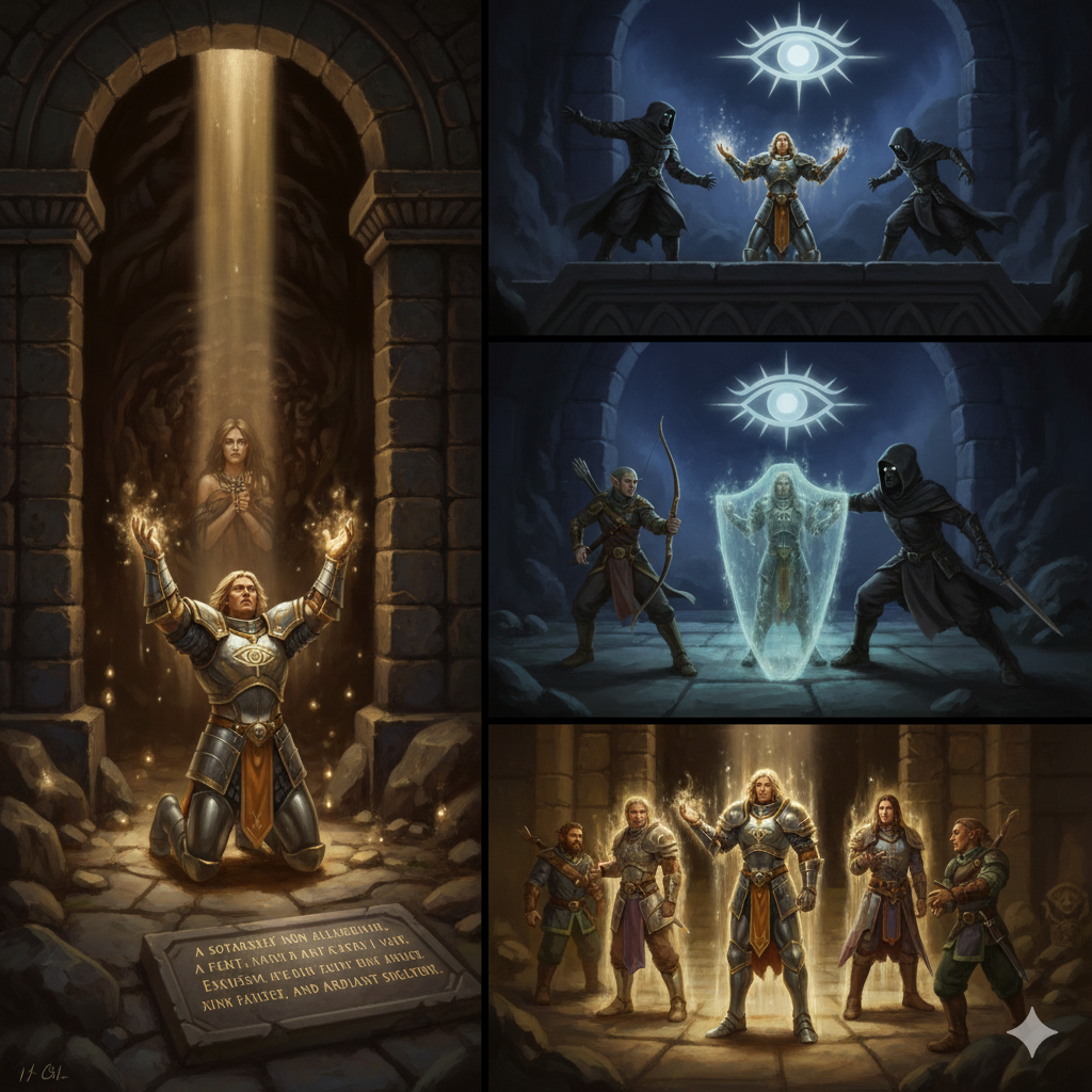A Fényrend paladinjai nem csupán harcosok, hanem erkölcsi iránytűk is. Esküjük szerint nem a sötétséget üldözik, hanem a fényt terjesztik — minden rászorulónak segítenek, minden fájdalomban reményt kovácsolnak. Az Oath of Illumination a belső fény és a külső cselekedetek összhangját követeli meg.
