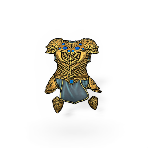 The breastplate has 8 sapphire gems embedded in the front and engravings that look like a spider's face, while the interlocking plates are engraved with a spider's web. Soft leather and silk are worn underneath. The armor provides little protection to the wearer's limbs, favoring freedom of movement instead.