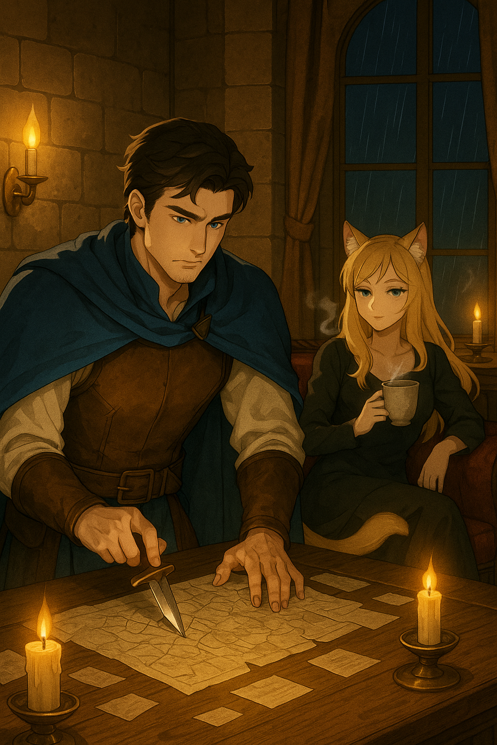 When word reaches the guild hall that a splinter faction calling itself the Retainers has seized the old southern keep, The Master, a strategist with ice in his veins, answers the summons without hesitation. At his side moves Aliza Everguard, the Cat: loyal, volatile and half-drunk on Embercrack tea. With a ranger, a goblin captain, and ten warriors of Clan Bogcloth, they march to end the uprising before dawn.