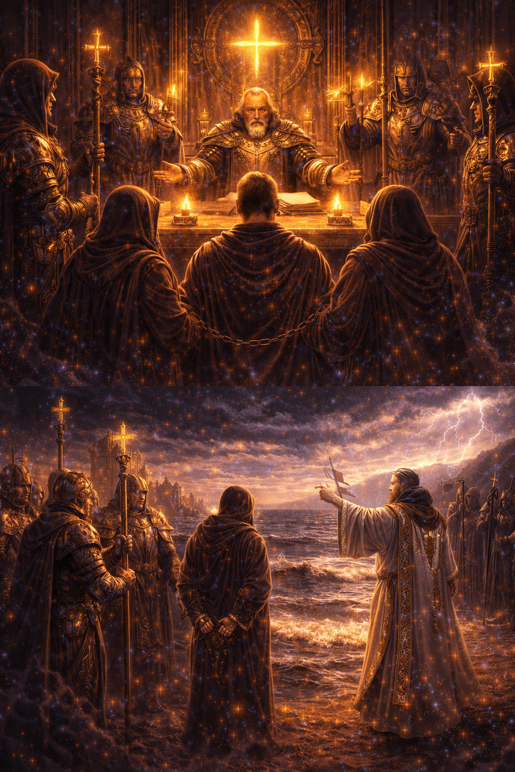 On the twenty-first day of the fifth rotation of the eighth revolution, the Preacher Zurâníous killed two men for their boundless dreaming … a trial was held … the Isle of Creed was furious and ordered the immediate release of their preacher, as the Baknahan allowed the preacher to destroy those who opposed the words…. The Ministry …. This was an outrage .... the Hariton declared that his preacher was protected …. A small army of the Zealots came to the shore, but quickly the Zætom acted ….