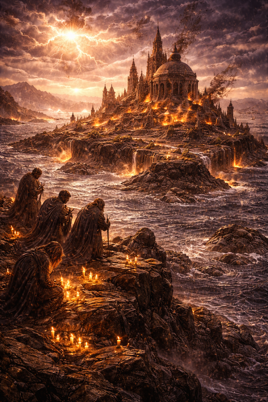 A higher power must have had a hand in allowing part of the temple to survive, as a monument to the cause of war. What I can determine is that this temple had sentimental value, as many people in the days that followed the calming of the quakes and the burning fire, had come out weeping at the ruin, which had been cast upon an isle amongst the waters.