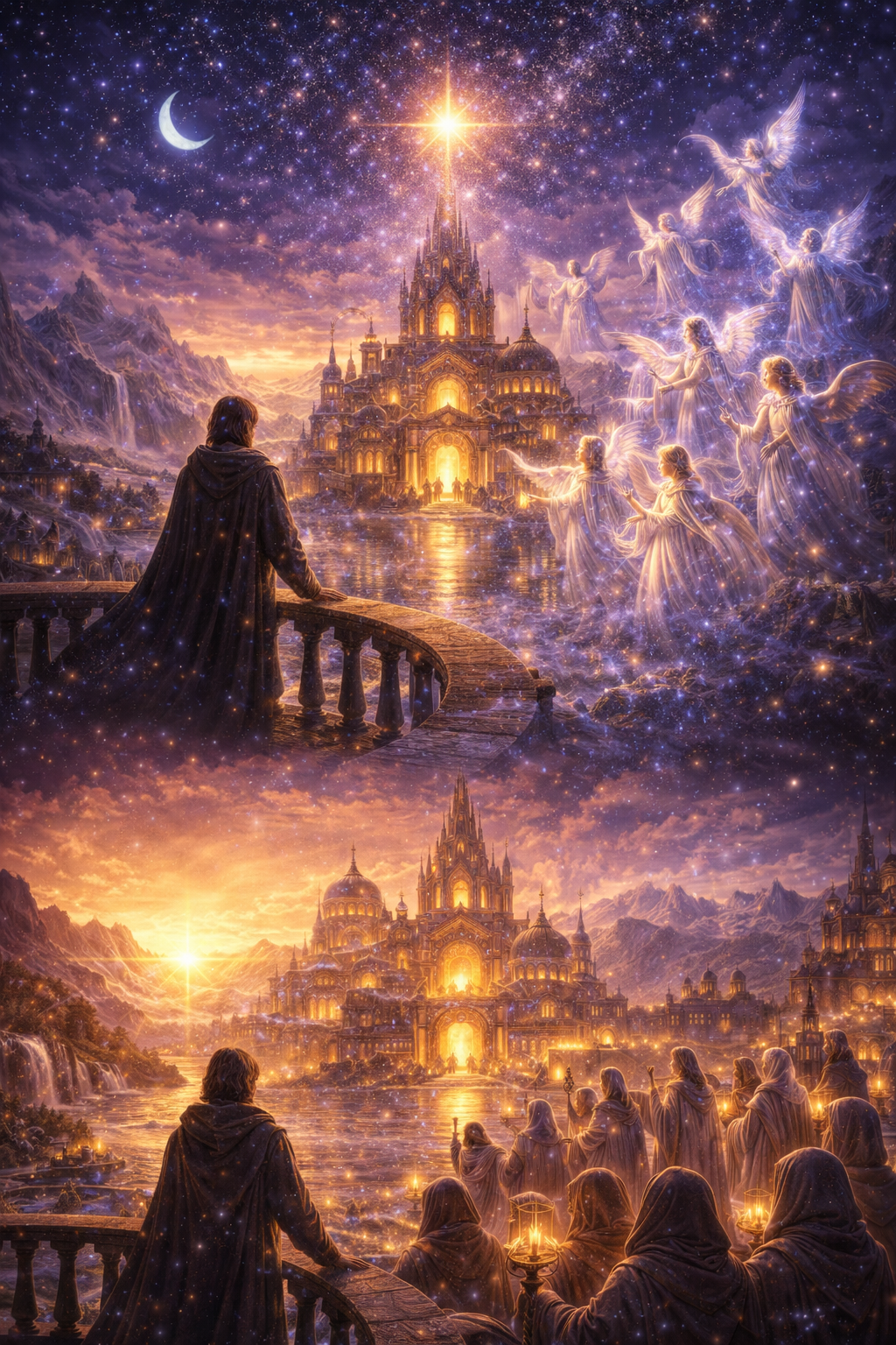 In a city of Celestial Heights … I see the angels gather in a choir and hear their music call.